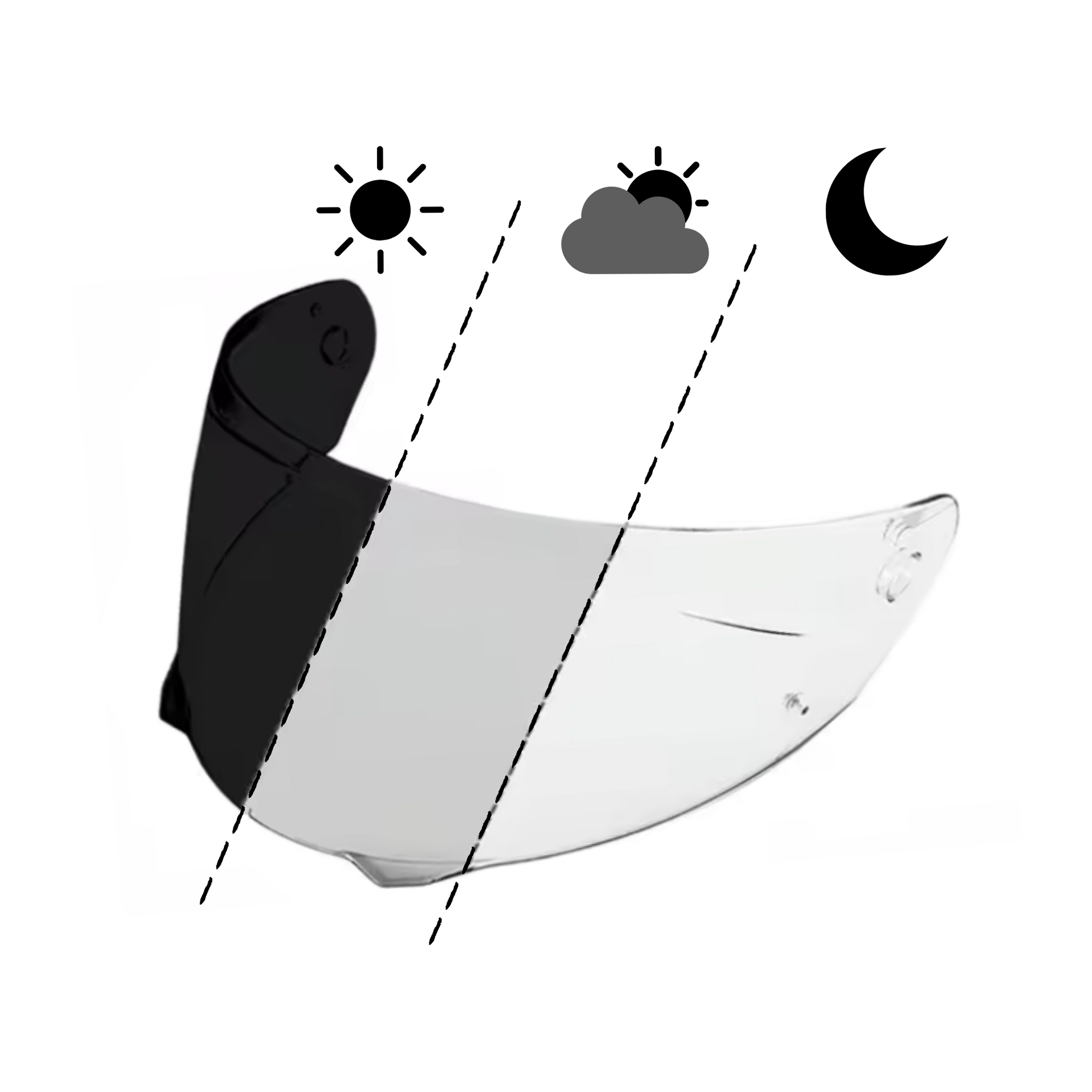 La lente ajusta su tonalidad según la intensidad de la luz ambiental, oscureciéndose con el sol y aclarándose en condiciones de baja luminosidad, sin necesidad de cambiar la visera. -